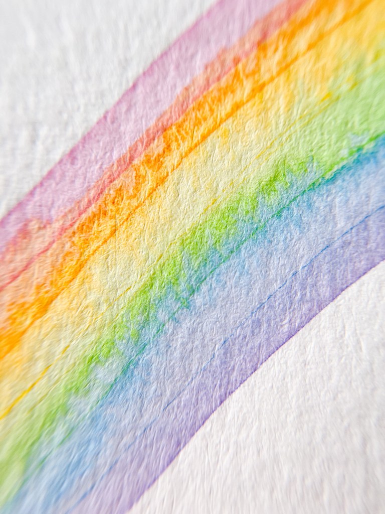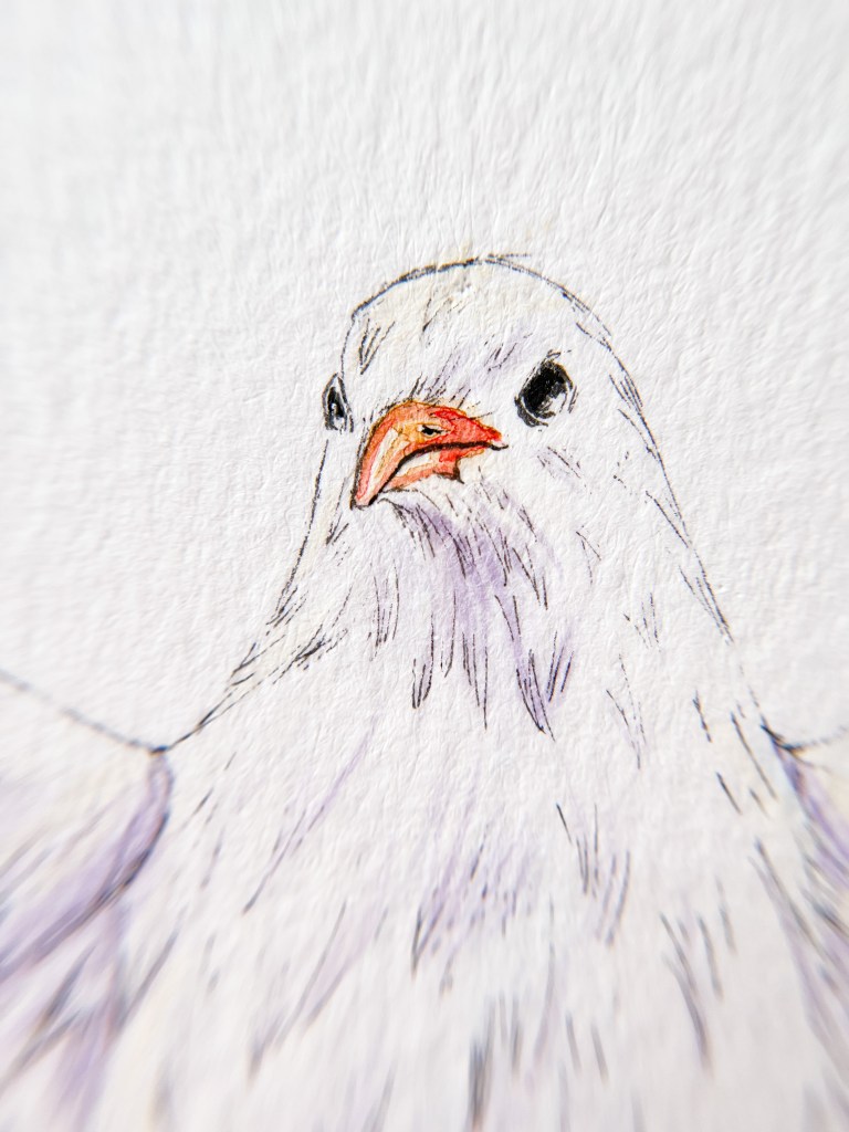 What I came up with was a white — but colorful — watercolor dove with delicate pen work, holding an olive branch. Above the dove, is a pastel rainbow. When I showed my daughter, she gasped in delight! I’ll count that as a win!