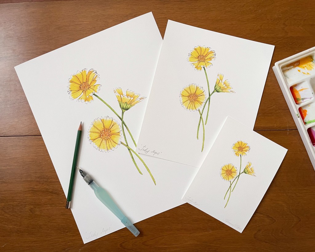 I’ll forever be in love with California golden poppies, but I think these coastal tidy tips are a close second! It was so fun to paint these sunshine-y wildflowers endemic to California.