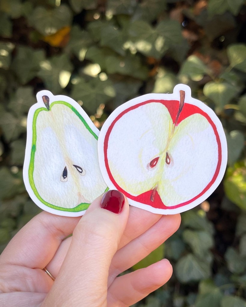 My apple slice and pear slice stickers are live in the shop! Snag some here — perfect for small, cheap Christmas gifts or stocking stuffers for any teachers, foodies, gardeners or nature lovers. They’re also available for wholesale purchase here!