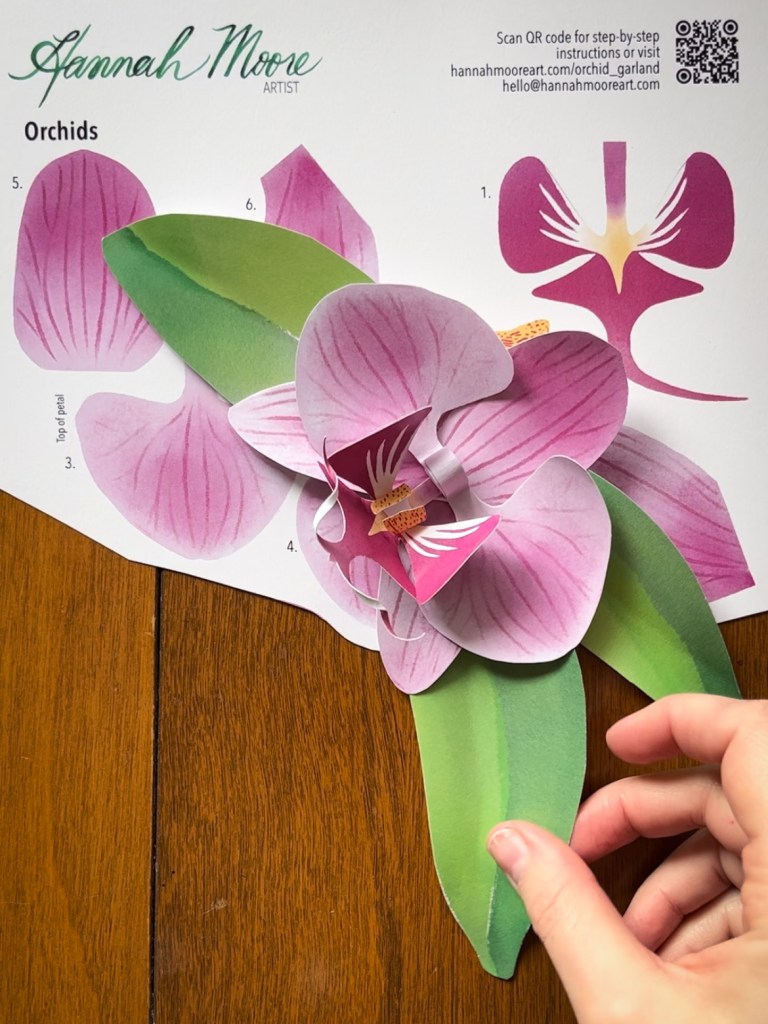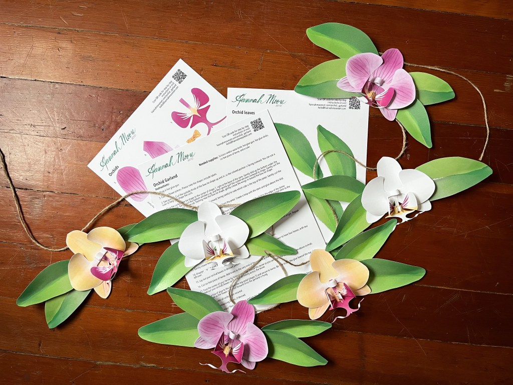 To create your paper orchid garland, you’ll need: