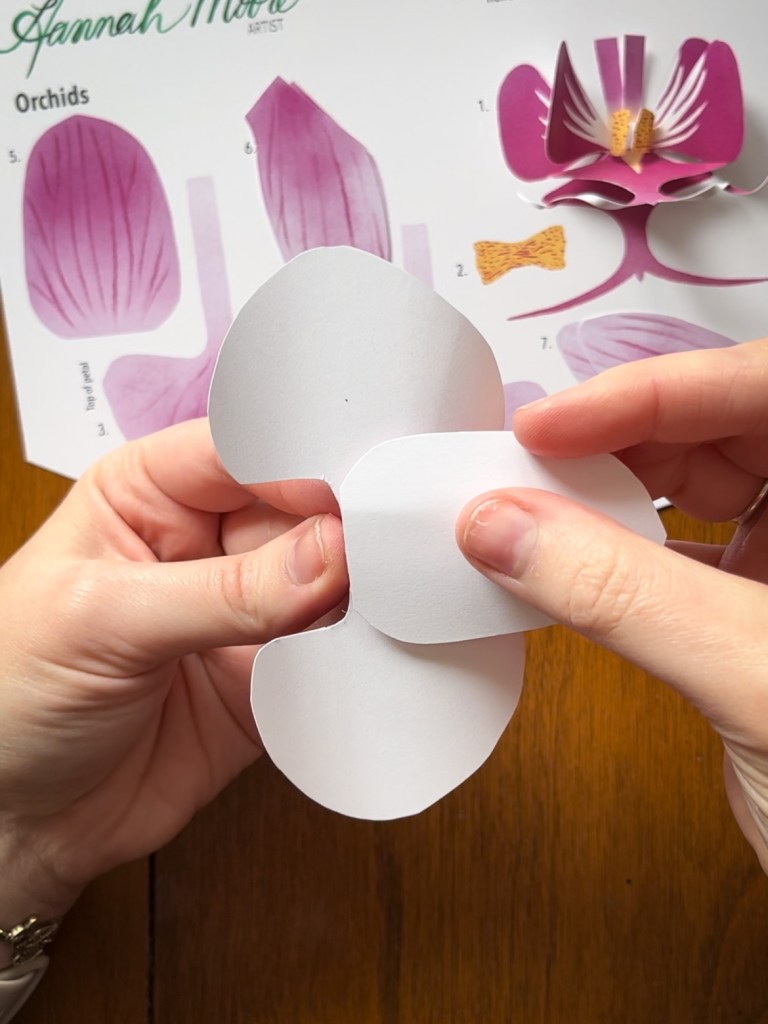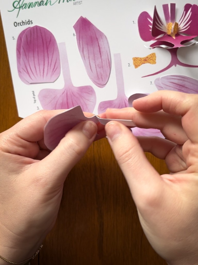 -Gently curl the top edges of pieces #3 and #4 inward, being careful to note which side is the top of the petal. The top of each petal leans in toward the center.